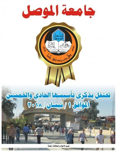 ابتهاجا بالذكرى الحادية والخمسين لتأسيس جامعة الموصل، وتزامنا مع احتفالات النصر الكبير وتحرير مدينة الموصل وكامل التراب العراقي من دنس الاعداء.. تحتفل جامعتنا العريقة بيومها الاغر في الاول من نيسان 2018 وتتضمن اقامة فعاليات فنية وثقافية ورياضية ومعارض متنوعة وسباق الماراثون وايقاد الشعلة وحفلات وانشطة اخرى داخل الحرم الجامعي .