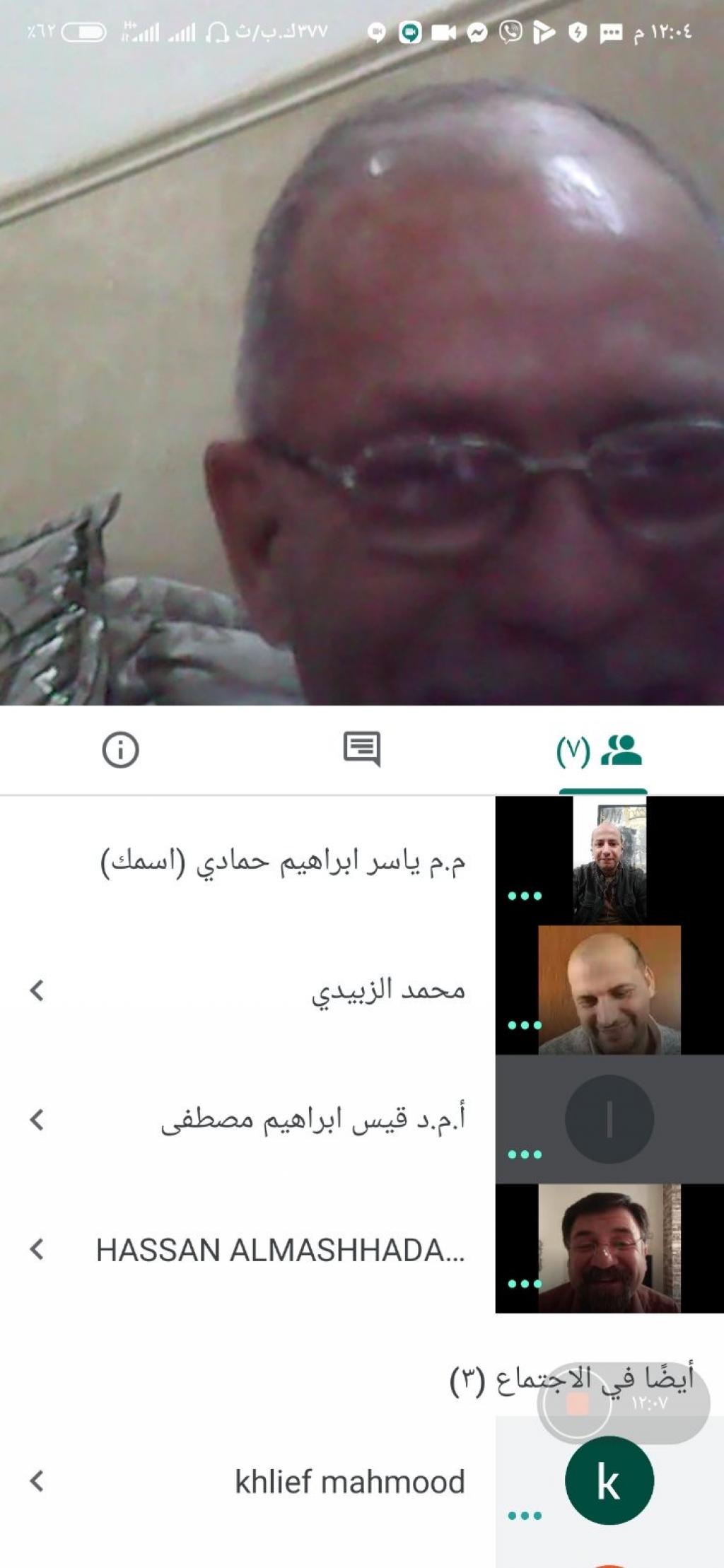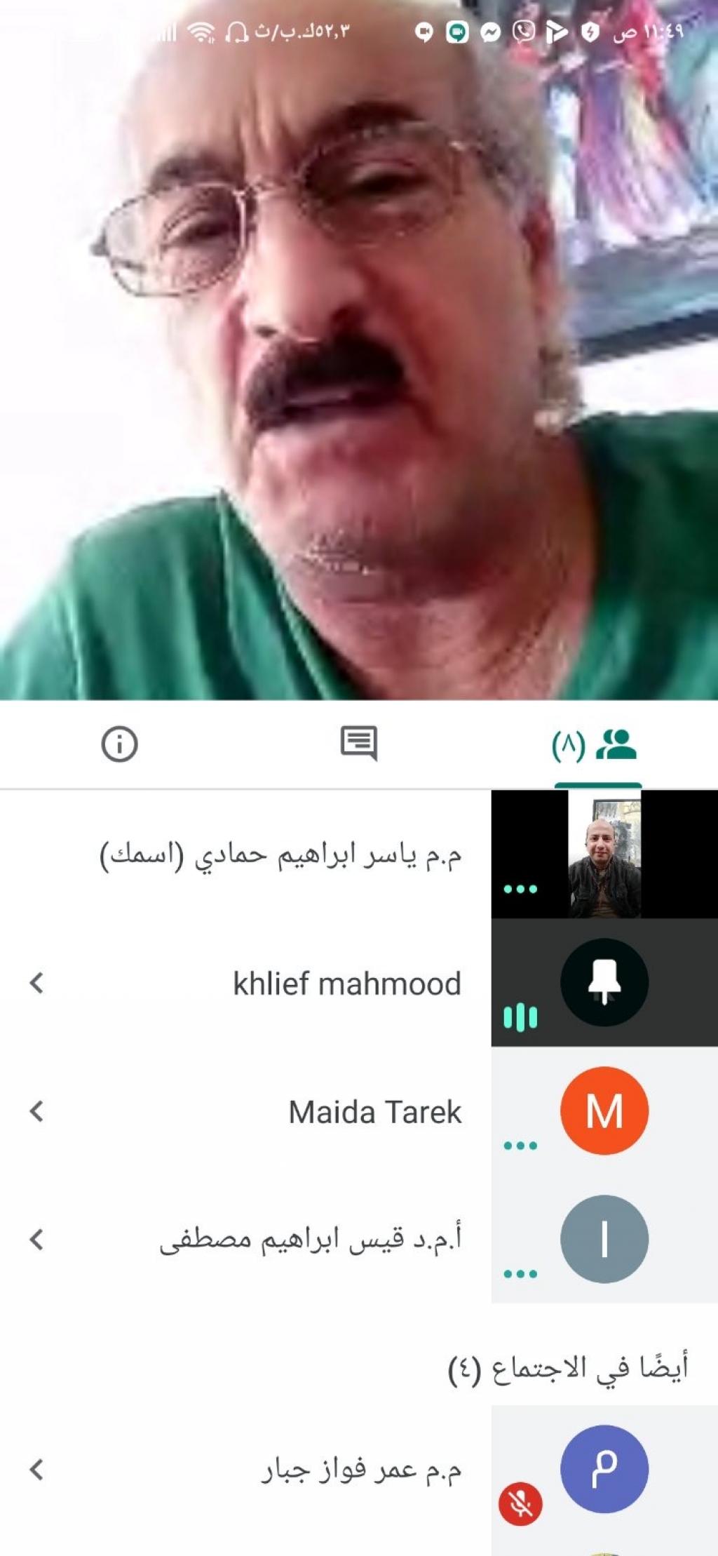 اقامت كلية الفنون الجميلة – قسم الفنون التشكيلية يوم السبت الموافق 11 نيسان 2020 حلقة نقاشية الكترونية عبر برنامج meet للأستاذ الدكتور قيس ابراهيم بعنوان ( التلوث البصري في مدينة الموصل – الاسباب – النتائج – المعالجات) حضر وتفاعل مع موضوع الحلقة معظم تدريسي القسم .