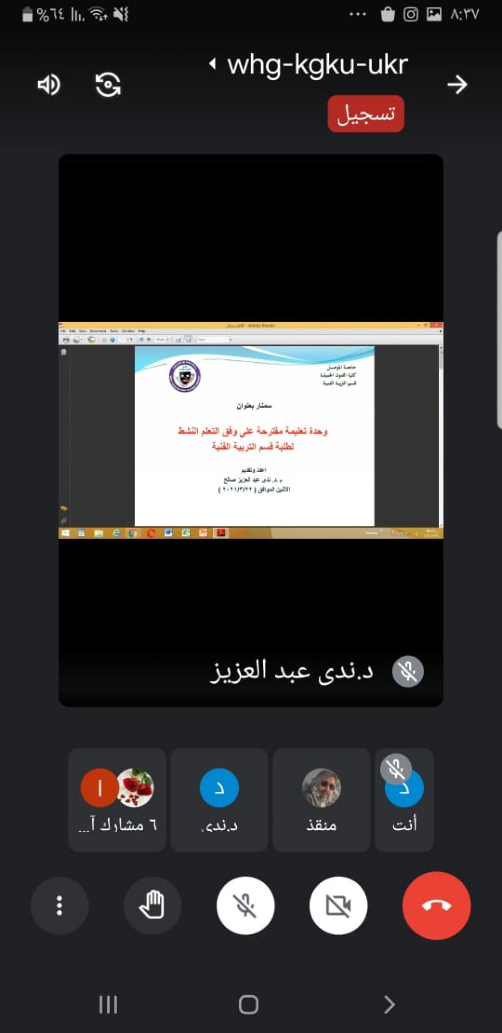 أقام قسم التربية الفنية في كلية الفنون الجميلة مساء يوم الاثنين الموافق ٢٢ اذار ٢٠٢١ حلقة نقاشية (سمنار) بعنوان (وحدة تعليمية مقترحة على وفق التعلم النشط لطلبة قسم التربية الفنية) قدمتها م.د. ندى عبد العزيز صالح عبر اللقاء الالكتروني لمنصة (meet) ادارها السيد رئيس القسم الدكتور منقذ محمد فيصل بحضور عدد من تدريسي القسم ، تضمنت المحاضرة محور نظري ومحور تطبيقي تجسد التفاعل من خلال المناقشات التي دارت حول موضوع الحلقة والتي تعد من الاساليب الحديثة في طرائق التدريس و أبدى الحاضرين شكرهم ورايهم الإيجابي بصدد حداثة الموضوع.