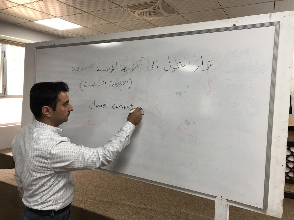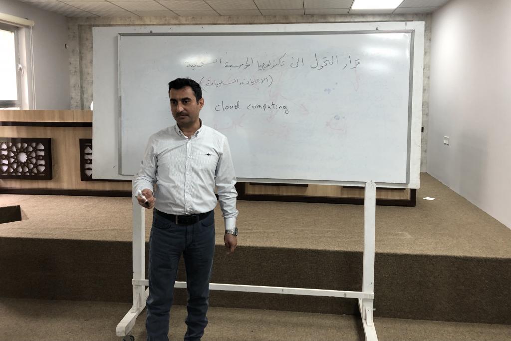 (قرار التحول الى تكنلوجيا الحوسبة السحابية (الايجابيات والسلبيات) (Cloud Computing)) تقديم م.د.سيف الدين امجد اسماعيل وعلى قاعة الدراسات العليا بحضور عدد من اساتذة الكلية