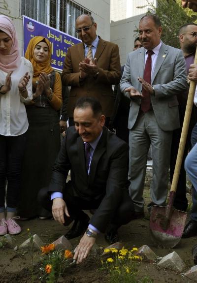 استجاب السيد رئيس جامعة الموصل الاستاذ الدكتور قصي كمال الدين الاحمدي الى تحدي كروب اصدقاء الفن وهم مجموعة من طلبة كلية الفنون الجميلةفي حملة تطوعية بعنوان (ازرع وردة) ,تلخصتعبر زيارته لكلية الفنون الجميلة صباح يوم الثلاثاء الموافق 9 نيسان 2019 ليشاركهم زراعة بعض الانواع من الزهور تزامناً مع حلول فصل الربيع مساندا في المبادرة التطوعية التي تنطلق من داخل حدائق كلية الفنون الجميلة لتشمل كافة كليات ومراكز جامعة الموصلمثمناً مبادرتهم في نشر صور الجمال والذائقة الرفيعة في اروقة جامعة الموصل كافة