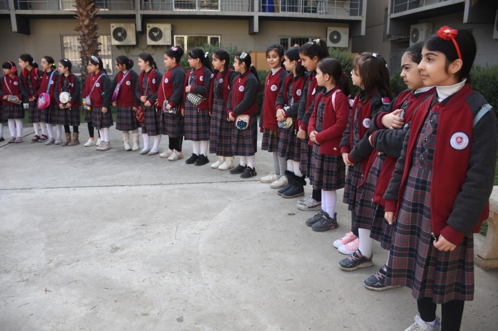 كما كان في استقبال وفد المدرسة السيد مصعب سامي مدير إدارة الكلية والتدريسية شيماء حليم من قسم التربية الفنية و التدريسية أزهار رمزي من قسم الفنون التشكيلية.شعبة إعلام كلية الفنون الجميلة