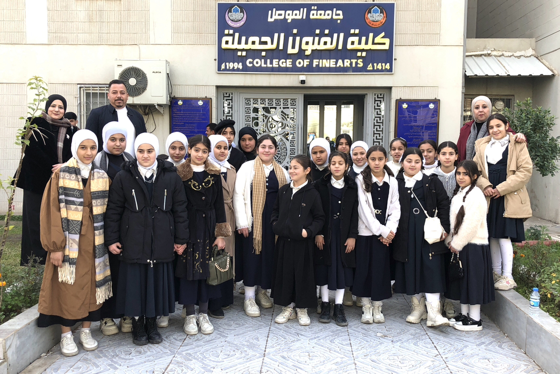 استقبلت كلية الفنون الجميلة بجامعة الموصل اليوم الاثنين ٢٢ كانون الاول ٢٠٢٥ في زيارة علمية لتلميذات مدرسة شمس العراق للبنات برفقة مديرة المدرسة وعدد من الكادر التعليمي .