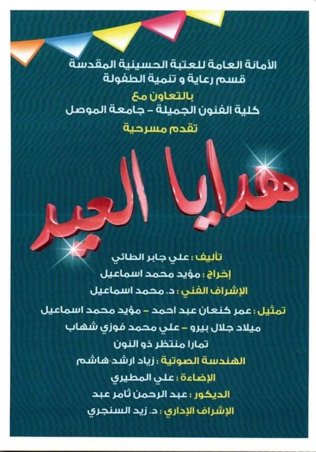 كل من الامانة العامة للعتبة الحسينية المقدسة / قسم رعاية وتنمية الطفولة وكلية الفنون الجميلة في جامعة الموصل.