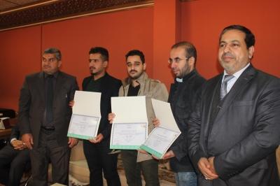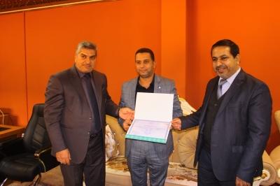 تقديراَ وتثمينا لمشاركة كلية الفنون الجميلة / جامعة الموصل في المعرض الفني برعاية العتبة الحسينية المطهرة في محافظة كربلاء بتاريخ 4-5 كانون الثاني 2018زار السيد حسين عبد الله الاسدي رئيس رابطة النجف الاشرف الخدمية كلية الفنون الجميلة يوم الاربعاء الموافق 17 كانون الثاني 2018 وقدم شهادة شكر وتقدير للدكتور حامد ابراهيم الراشدي عميد كلية الفنون الجميلة والدكتور مصعب ابراهيم محمد معاون العميد للشؤون الادارية وكل من الطالب أسيد وليد احمد والطالب احمد محمد عنبر والطالب طارق زياد خلف للمشاركة .