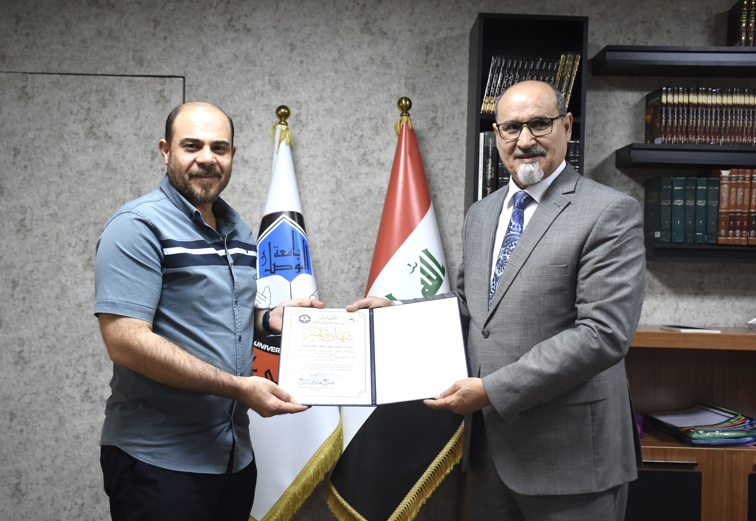 سلمت عمادة كلية الفنون الجميلة متمثلة بالأستاذ الدكتور حامد ابراهيم الراشدي شهادتي تميز لقسمي الفنون المسرحية والفنون التشكيلية في كلية الفنون الجميلة ، لحصولهم في وقت سابق على المركز الاول في التصنيف العراقي للجامعات لعام ٢٠٢٤-٢٠٢٥ من خلال التنافس مع التخصصات المناظرة في الجامعات والكليات الحكومية والاهلية .