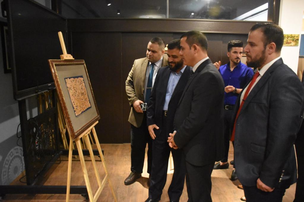 وقد تضمن المعرض لوحات فنية متنوعة بين الطرق على الجلود والنحت على الخشب والخط والزخرفة.