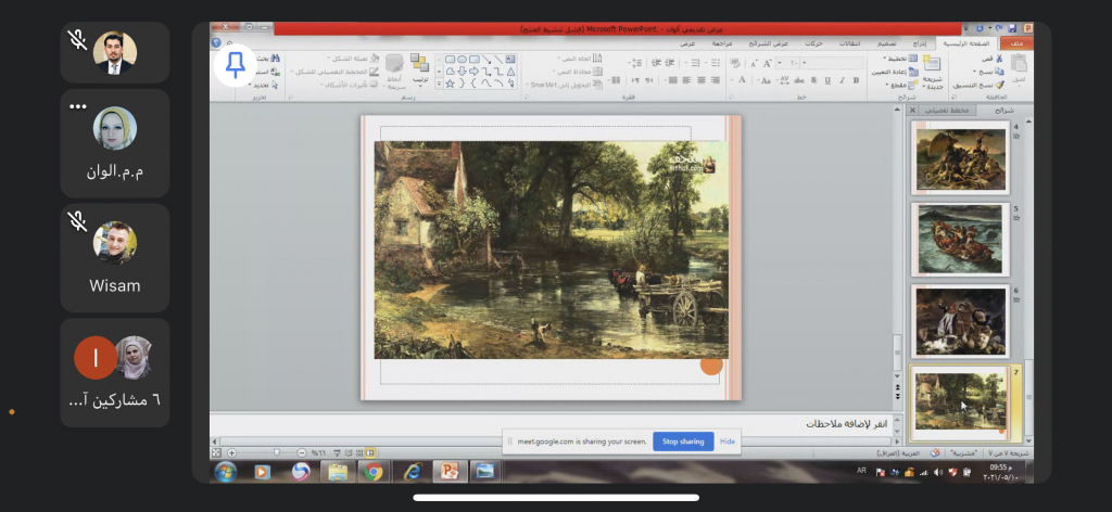 ضمن سلسلة الحلقات النقاشية التي تعقدها كلية الفنون الجميلة اقام قسم التربية الفنية حلقة نقاشية مساء يوم الاثنين الموافق ١٠ ايار ٢٠٢١ بعنوان(القراءات الاسلوبية لفناني الرومانتيكية) تقديم م.الوان خليف محمود عبر منصة meet بحضور عدد من اساتذة الكلية.تناولت الحلقة المدرسة الرومانتيكية واسباب ظهورها وتغليب سلطة الخيال والسمات الجمالية والفلسفة التي تأثرت بها واهم فنانيها ، والهدف هو التعرف على القراءات الاسلوبية لفناني الرومانتيكية.
