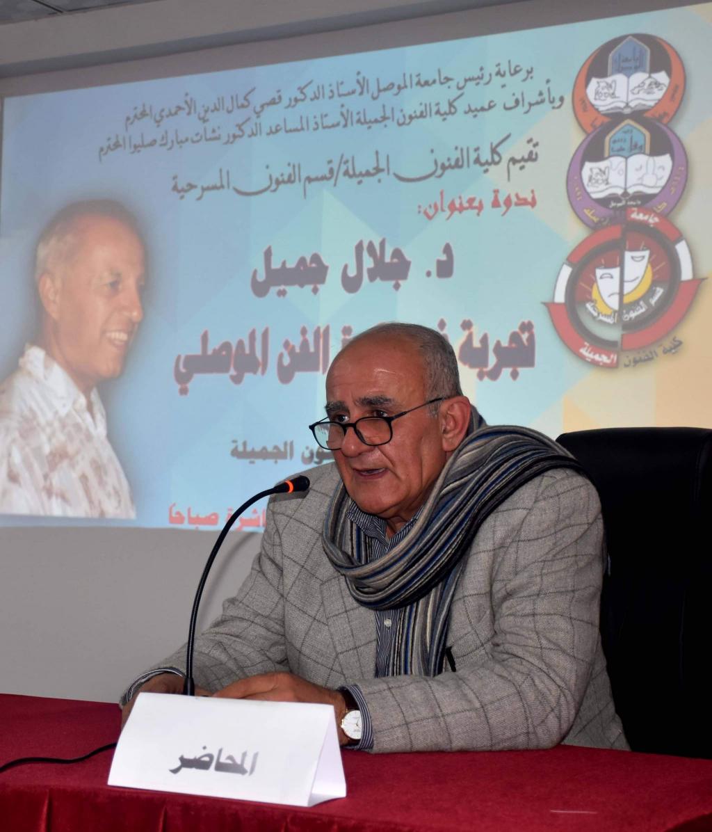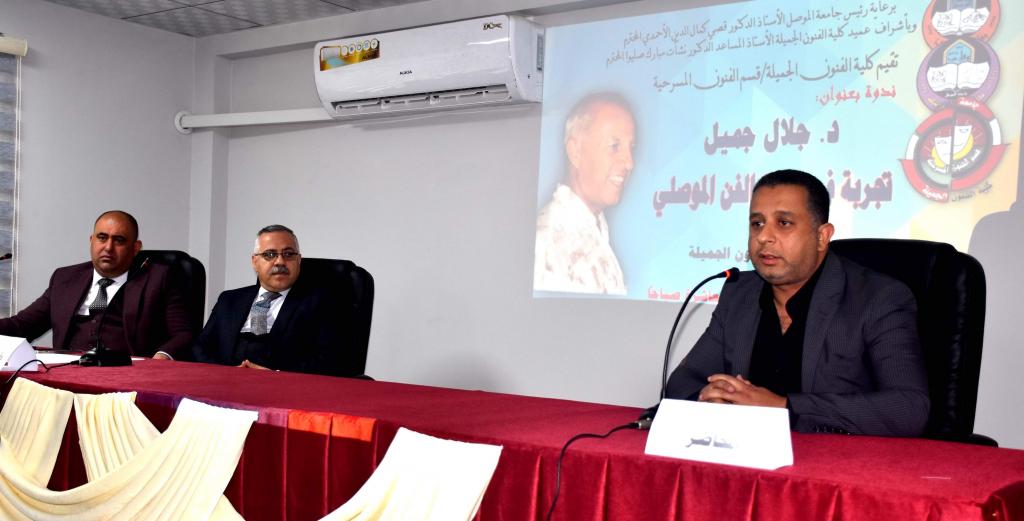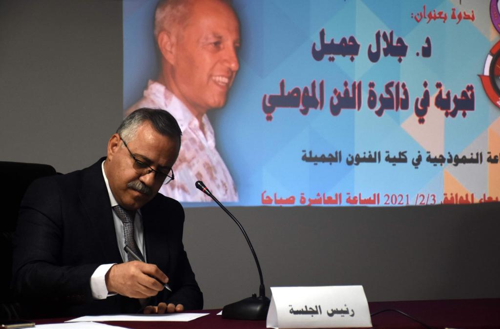 برعاية الاستاذ الدكتور قصي كمال الدين الاحمدي رئيس جامعة الموصل وبأشراف الاستاذ المساعد الدكتور نشأت مبارك صليوا عميد كلية الفنون الجميلة اقام قسم الفنون المسرحية / كلية الفنون الجميلة ندوته الموسومة (د. جلال جميل .. تجربة في ذاكرة الفن الموصلي) صباح يوم الاربعاء الموافق 3 شباط 2021 في القاعة النموذجية للكلية، بحضور السادة رؤساء الاقسام وتدريسيي وموظفي الكلية وطلبة الدراسات العليا والأولية .