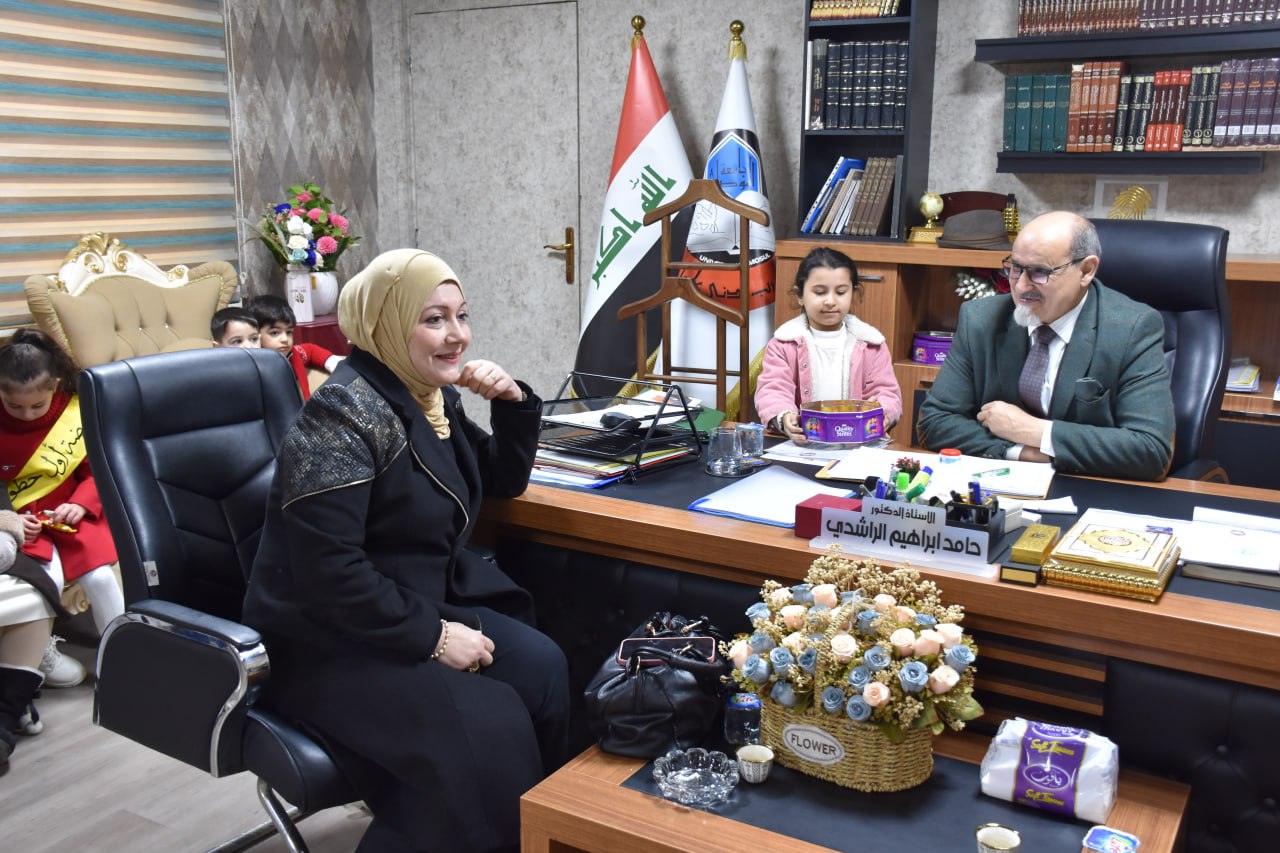 ضمن برنامج الزيارات استضافت عمادة كلية الفنون الجميلة الاربعاء ٧ كانون الثاني ٢٠٢٦ اطفال روضة “اول خطوة” برفقة المديرة وعدد من كادر الروضة لمشاهدة عرض مسرحي مخصص للأطفال، يهدف إلى تنمية مهاراتهم الإبداعية وغرس القيم التربوية في نفوسهم بطريقة شيقة ومبسطة. وقد أعرب السيد العميد خلال استقباله للأطفال وكادر الروضة عن سعادة الكلية بهذه المبادرات التي تفتح آفاق التعاون مع مؤسسات المجتمع وتساهم في بناء جيل واعد، مؤكداً على دور المسرح الجامعي في تقديم رسائل هادفة تخدم الطفولة.