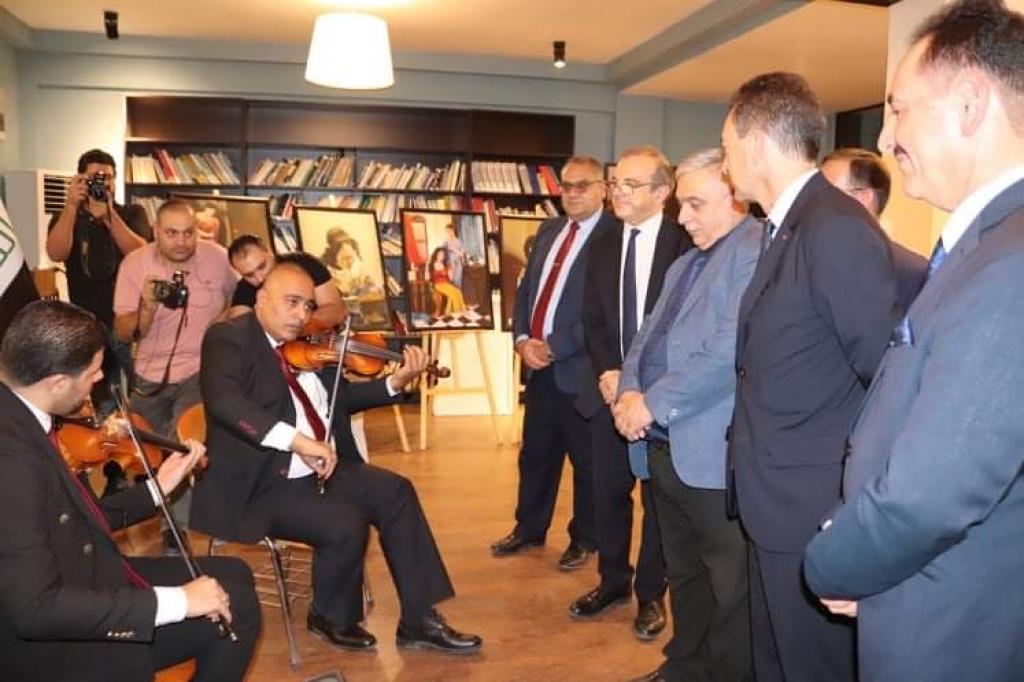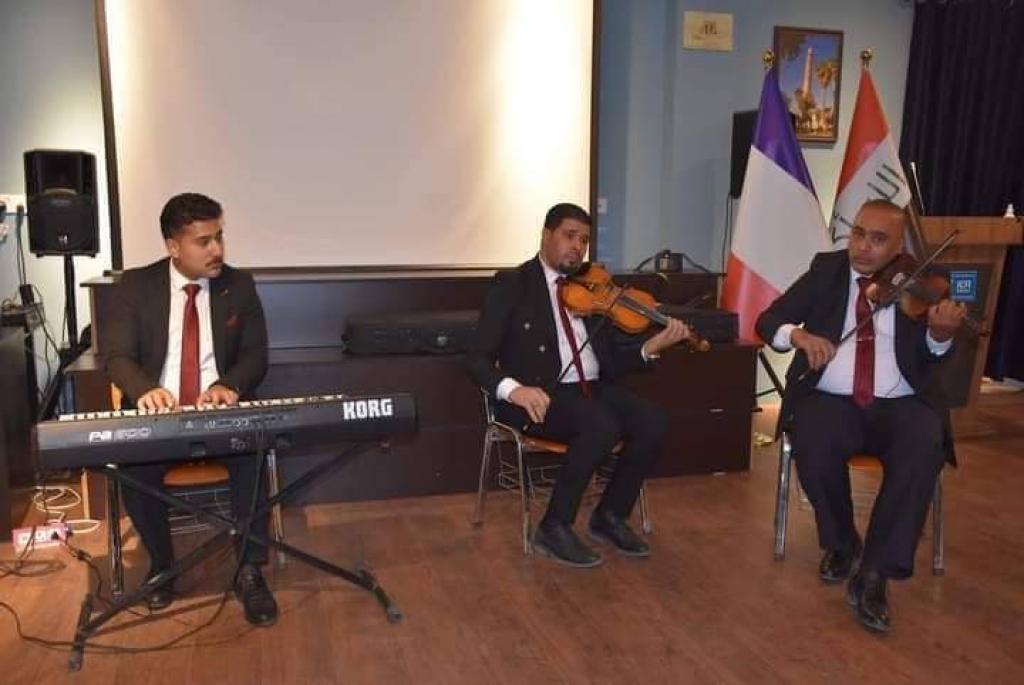 بمناسبة زيارة السفير الفرنسي في العراق السيد ايريك شوفالييه والقنصل الفرنسي الى جامعة الموصل وبحضور الأستاذ الدكتور قصي كمال الدين الاحمدي رئيس جامعة الموصل شاركت كلية الفنون الجميلة بمعرض تشكيلي ومعرض فوتوغرافي اقيم في المعهد الثقافي الفرنسي العراقي – الموصل يوم الثلاثاء الموافق ٢٦ تموز ٢٠٢٢ ، حضره الاستاذ الدكتور منير سالم طه مساعد رئيس الجامعة للشؤون العلمية والاستاذ الدكتور نشأت مبارك صليوا عميد كلية الفنون الجميلة وعدد من عمداء الكليات واساتذة ومدعوين.ضم المعرض لوحات تشكيلية لطلبة الكلية ومعرض فوتوغرافي للفنان انور الدرويش لمواضيع انعكاس واقع مدينة الموصل وتراثها ، فضلا عن تقديم مقطوعات موسيقية قدمها طلبة كلية الفنون الجميلة الفنان علي ناظم والفنان احسان الحبيب يرافقهم السيد محمد عبد العزيز .شعبة إعلام كلية الفنون الجميلة