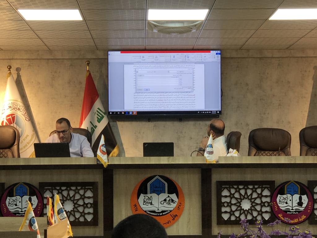 بإشراف وحضور الأستاذ الدكتور نشأت مبارك صليوا عميد كلية الفنون الجميلة أقيمت الورشة العلمية الموسومة (آلية كتابة البحوث العلمية وفق التصنيفات والمعايير العالمية) اليوم الأربعاء الموافق ١٠ اب ٢٠٢٢ على قاعة المناقشات النموذجية القاها كل من ا.م.د. عقيل ماجد حامد و م.د. عمر محمد جنداري حضرها المعاون الاداري ا.م.د.مصعب ابراهيم محمد وعدد من الاساتذة وطلبة الدراسات العليا .