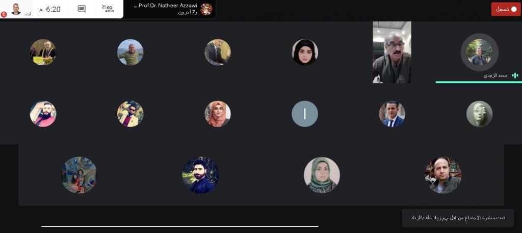 اقامت كلية الفنون الجميلة المؤتمر الطلابي الأول لبحوث التخرج لأقسامها الثلاث يوم الاثنين الموافق ٢١ أيلول ٢٠٢٠ على منصة meet بمشاركة الطلبة ورؤساء الاقسام والمشرفين على البحوث والاساتذة المعقبين بعد قراءة خلاصة البحوث فضلا عن مشاركة عدد من التدريسيين والطلبة والمهتمين بمجال الفن .نتمنى لجميع طلبتنا الاعزاء التوفيق الدائم خدمة لعراقنا العزيز.