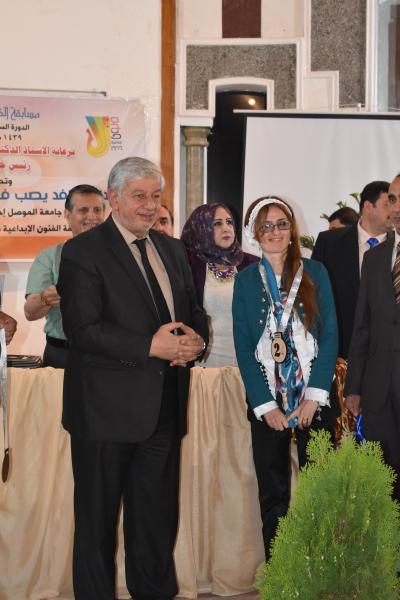 برعاية السيد رئيس جامعة الموصل الاستاذ الدكتور ابي سعيد الديوه جي، وبحضور السادة اعضاء مجلس الجامعة ، والطلبة الفائزين في المسابقة من الدراسات الاولية والعليا، ومنتسبي الجامعة من الاساتذة والموظفين في الاجناس الثلاثون .. اقامت جامعة الموصل صباح يوم الثلاثاء الموافق 24 نيسان 2018 في المنتدى العلمي والادبي للجامعة، احتفاليتها السنوية المركزية لمسابقة الفنون الابداعية في دورتها السادسة والعشرين للعام الدراسي 2017 – 2018، استهلت بتلاوة مباركة من آيٍات الذكر الحكيم ، بعدها تفضل السيد رئيس الجامعة بكلمة رحب فيها بالسادة الحضور والمشاركين في المسابقة ، وقال سيادته ان العبرة في المسابقة ليست التنافس بقدر ما هي استنباط واظهار للطاقات والمواهب والابداع في جامعتنا، متحدين الصعوبات والظروف التي مرت بها جامعتنا العريقة ابان الحقبة التاريخية المظلمة.. تلاها كلمة السيد رئيس اللجنة العليا للمسابقة الدكتور محمد اسماعيل المشهداني , وقام السيد رئيس الجامعة بتقديم دروع المسابقة للكليات الفائزة لتكون كلية الفنون الجميلة في المركز الاول وتم تسليم درع الكلية في المسابقة للسيد عميد كلية الفنون الجميلة الدكتور حامد ابراهيم الراشدي ، وجاءت كلية الآداب في المركز الثاني، و كلية التربية للعلوم الانسانية في المركز الثالث، والتقديرية كانت من نصيب كلية التربية للبنات.. بعدها قام السيد رئيس الجامعة بتوزيع الجوائز على الفائزين الحائزين على المراكز الثلاثة الاولى، وتوزيع الشهادات التقديرية على السادة اعضاء اللجنة العليا للمسابقة، ولجان تحكيم الاجناس الابداعية واللجان الساندة للمسابقة، وكان مسك ختام الاحتفالية مجموعة من الموشحات لفرقة انشاد الجامعة، التي نالت اعجاب الحاضرين. ان هذا التقليد السنوي وعلى النحو الذي تتبناه جامعة الموصل يحمل رسالة انسانية راقية مفادها ان الابداع ليس حكماً على احد. وهي تهدف الى توطيد العلاقة بين الطلبة والجامعة.