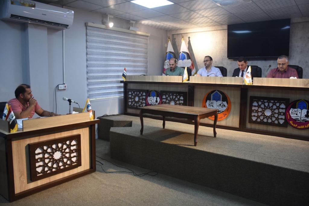 وجرت مناقشة سمنرات الطلبة في اجواء علمية هادئة وتضمنت المناقشات العديد من الملاحظات والتركيز على الرصانة العلمية فضلا عن التوجيهات التي ابداها الاساتذة لطلبة الدراسات العليا.