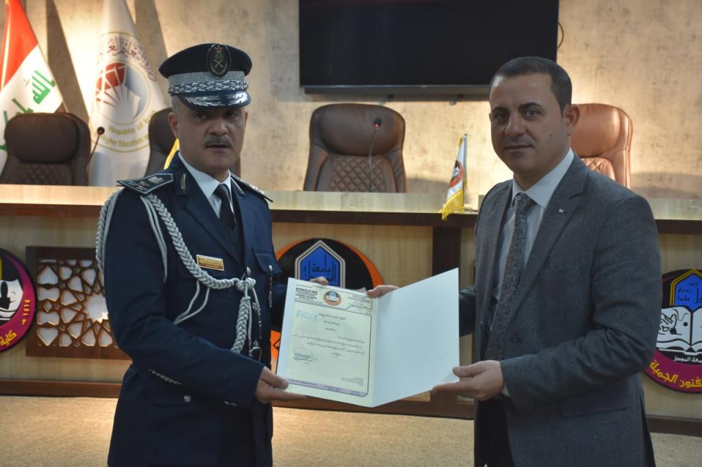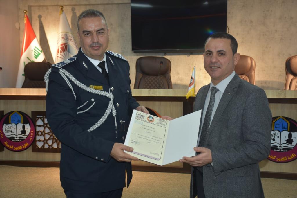 بحضور السيد عميد كلية الفنون الجميلة الأستاذ الدكتور نشأت مبارك صليوا والسيد المعاون الاداري استضافت عمادة الكليه عدد من ضباط مديرية مرور نينوى اليوم الاربعاء الموافق ١ شباط ٢٠٢٣ لالقاء محاضرة توعوية ارشادية مرورية لمنتسبي وطلبة كليه الفنون ، تخللها مجموعة من الاسئلة والمداخلات التي اغنت المحاضرة.وفي نهاية المحاضرة تم تكريم السادة المحاضرين من الضباط بشهادات تقديرية من قبل السيد عميد الكلية .