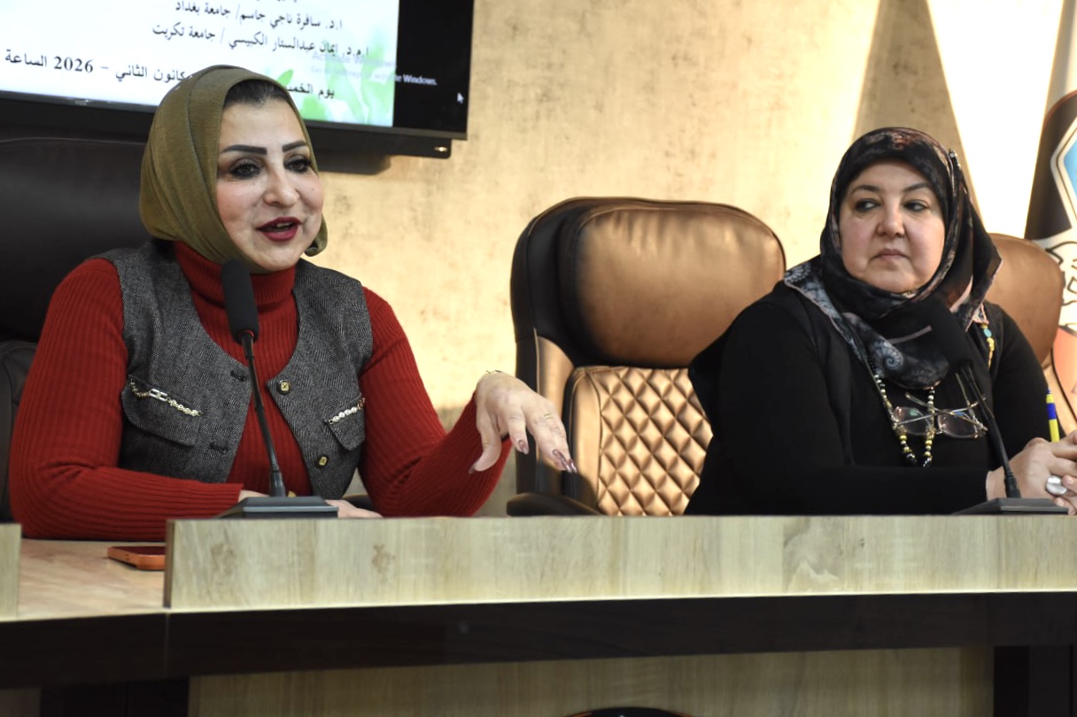 اقامت وحدة شؤون المرأة بالتعاون مع وحدة التعليم المستمر في كلية الفنون الجميلة المحاضرة الموسومة (الدور التنويري للفن) اليوم الخميس ١٥ كانون الثاني ٢٠٢٦ بحضور عميد الكلية الاستاذ الدكتور حامد ابراهيم الراشدي والمعاون العلمي ورؤساء الاقسام العلمية وعدد من منتسبي الكلية ، والتي القاها ا.م.د.ايمان عبدالستار الكبيبسي من جامعة تكريت ، وادارها ا.د.ميادة مجيد الباجلان .