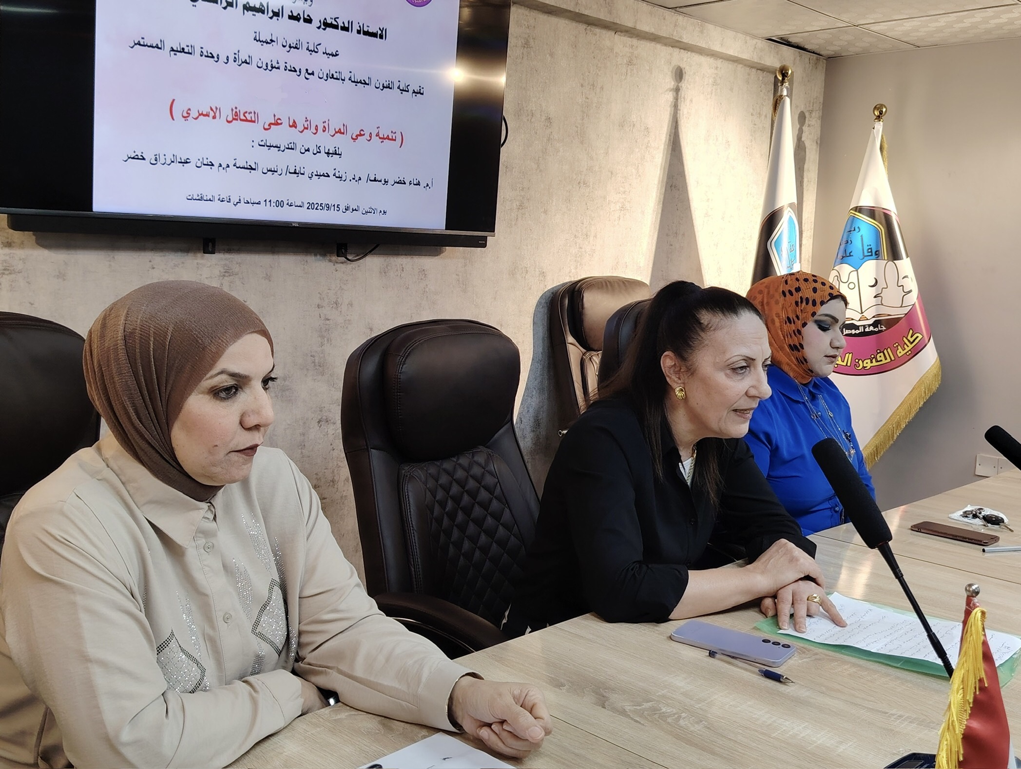 محاضرة في كلية الفنون الجميلة عن تنمية وعي المراة واثرها على التكافل الاسري