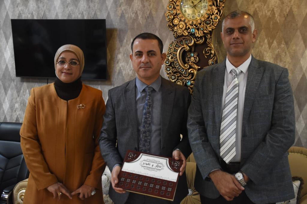 مديرة كرسي اليونسكو في جامعة الموصل تمنح عميد كلية الفنون الجميلة شهادة تقديرية.