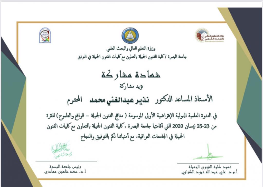 مشاركة تدريسيين في ندوة دولية افتراضية حول مناهج الفنون الجميلة