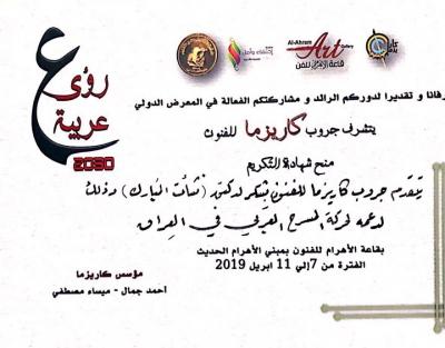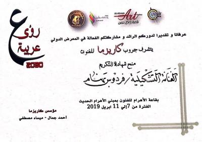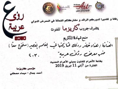 ضمن فعاليات معرض رؤى عربية 2030 المقام في جمهورية مصر العربية – القاهرة للفترة 7 إلى 11 نيسان 2019 بمشاركة واسعة من 9 دول عربية من ضمنها العراق , شارك كل من التدريسية هناء خضر من قسم الفنون المسرحية في فيلم قصير بعنوان (سنخرج معا ) والذي يدور حول حياة مغترب الذي عرض على قاعة الاهرام في القاهرة , ومشاركة التدريسية فردوس بهنام من قسم الفنون التشكيلية بلوحة كرافيك وحصولهم على شهادات تكريم وحصول التدريسي رائد فرحان من قسم الفنون التشكيلية بدرع التميز وشهادة تكريم كونه من رواد الحركة التشكيلية العراقية , وحصول الدكتور نشأت مبارك معاون عميد كلية الفنون الجميلة للشؤون العلمية بشهادة تكريم لدعمه حركة المسرح العربي في العراق