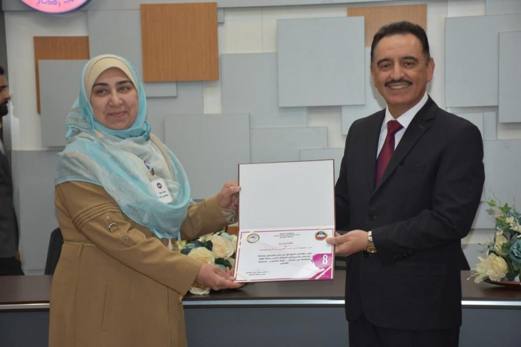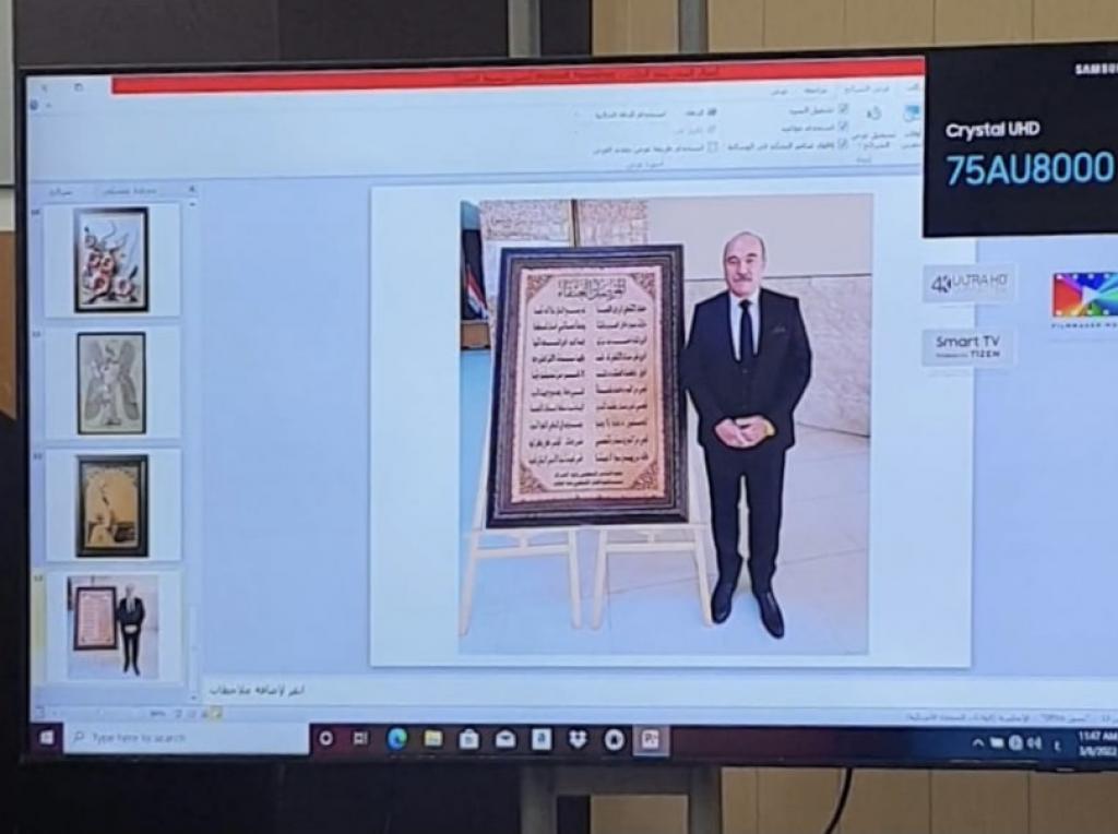 واتت مشاركة د.ندى عبد العزيز ضمن اللجنة التحضيرية للاحتفال و تم عرض فيديوي للسيد عماد منيب الحائك حول فن الطرق على الجلود ضمن منهاج الاحتفالية فضلاً عن تكريم الدكتورة ندى بشهادة تقديرية ضمن لفيف من نساء متميزات من جامعة الموصل.