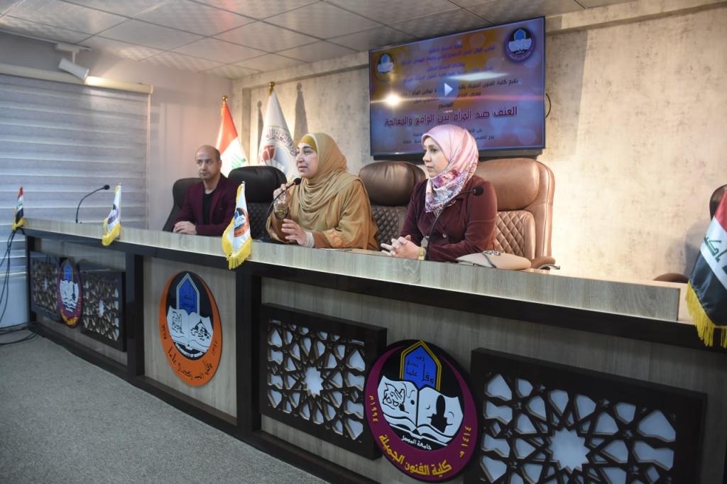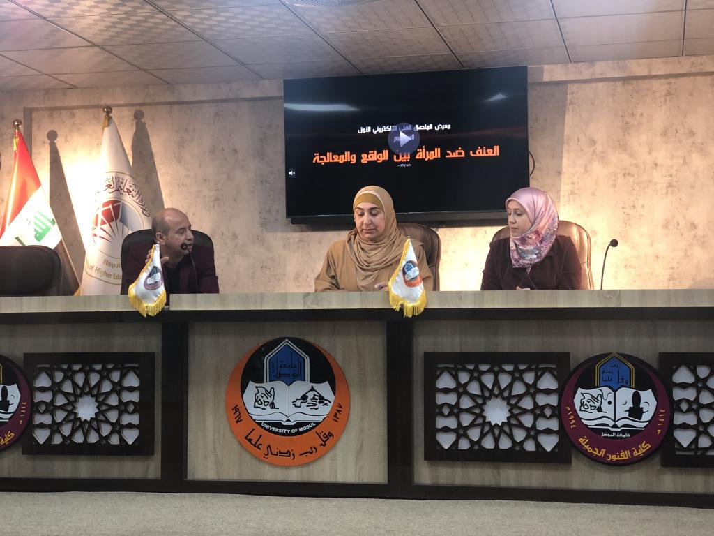 ومن ثم أقيمت حلقة نقاشية عن المعرض ادارها م.د ندى عبد العزيز وعضوية كل من م.م ليلى سيف الدين مسؤولة وحدة تمكين المرأة في / جامعة الموصل وم. ياسر ابراهيم وعلى المونتاج م.م اوس مروان .