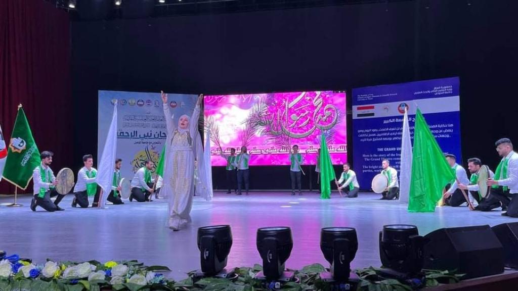 ومن ثم قدمت كلية الفنون الجميلة عرضا مسرحياً بعنوان نبي الرحمة تمحورت قصته عن مجموعة شخصيات عالمية تحدثت عن السيرة العطرة لرسول الرحمة ودوره الإنساني للنهوض بواقع البشرية جمعاء .