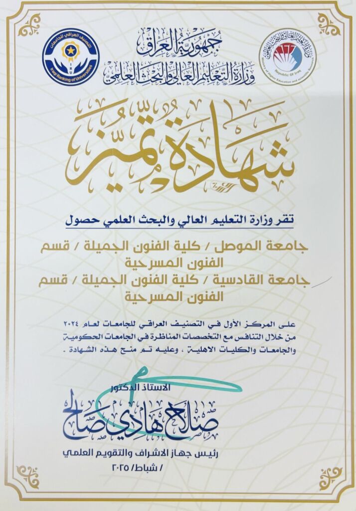تنعى عمادة كلية الفنون الجميلة – جامعة الموصل ، وفاة الطالبة تمارة سيف الدين من قسم الفنون المسرحية المرحلة الثالثة للدراسة الصباحية ، اثر مرض عضال ، سائلين المولى عزوجل ان يتغمدها بواسع رحمته ويلهم اهلها وذويها الصبر والسلوان .