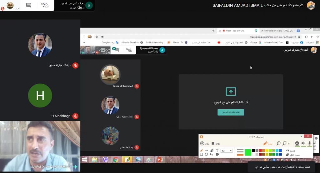 برعاية السيد رئيس جامعة الموصل الأستاذ الدكتور قصي كمال الدين الاحمدي المحترم وباشراف مباشر من قبل السيد عميد كلية الفنون الجميلة الأستاذ المساعد الدكتور نشأت مبارك صليوا المحترم ، أقامت كلية الفنون الجميلة/ قسم الفنون المسرحية يوم الثلاثاء الموافق ١٩ آيار ٢٠٢٠ ورشة افتراضية حول نظام التعليم الالكتروني قام بتقديمها المدرس الدكتور سيف الدين أمجد والتي كانت بعنوان (طرق اعداد المحاضرات الفيديوية باستخدام برنامج ال Power Point وبرنامج ال lcecream Screen Recorder ) سلط الضوء فيها على استخدام تلك البرامج بشكل تطبيقي وبما تخدم المسيرة التعليمية في ظل أزمة كورونا.