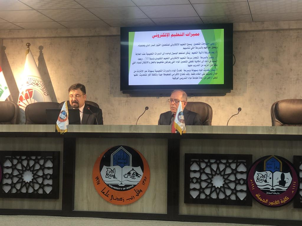 بإشراف الاستاذ الدكتور نشأت مبارك صليوا عميد كلية الفنون الجميلة وبمتابعة من الأستاذ المساعد الدكتور بشار عبد الغني محمد معاون العميد للشؤون العلمية. اقام قسم الفنون التشكيلية في كلية الفنون الجميلة ورشة عمل بعنوان ( التعليم الالكتروني ) على قاعة المناقشات يوم الثلاثاء الموافق ١٩ نيسان ٢٠٢٢ حاضر فيها المدرس المساعد حسن محمد نوري وبحضور عدد من اعضاء الهيئة التدريسية والموظفين والطلبة . تناولت الورشة التعليم الالكتروني ايجابياته والمعوقات التي يواجهها المعنيون من اساتذة وطلبة والسبل الكفيلة بمعالجتها . واختتمت الورشة بطرح الاسئلة والمداخلات المستفيضة والتي اغنت الورشة بالملاحظات. شعبة إعلام كلية الفنون الجميلة.