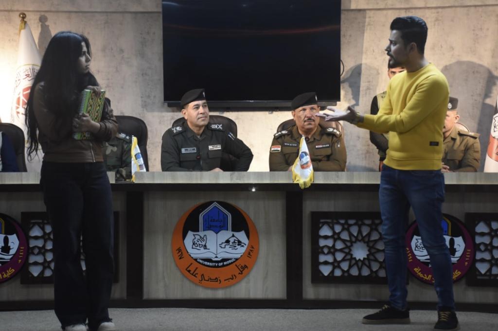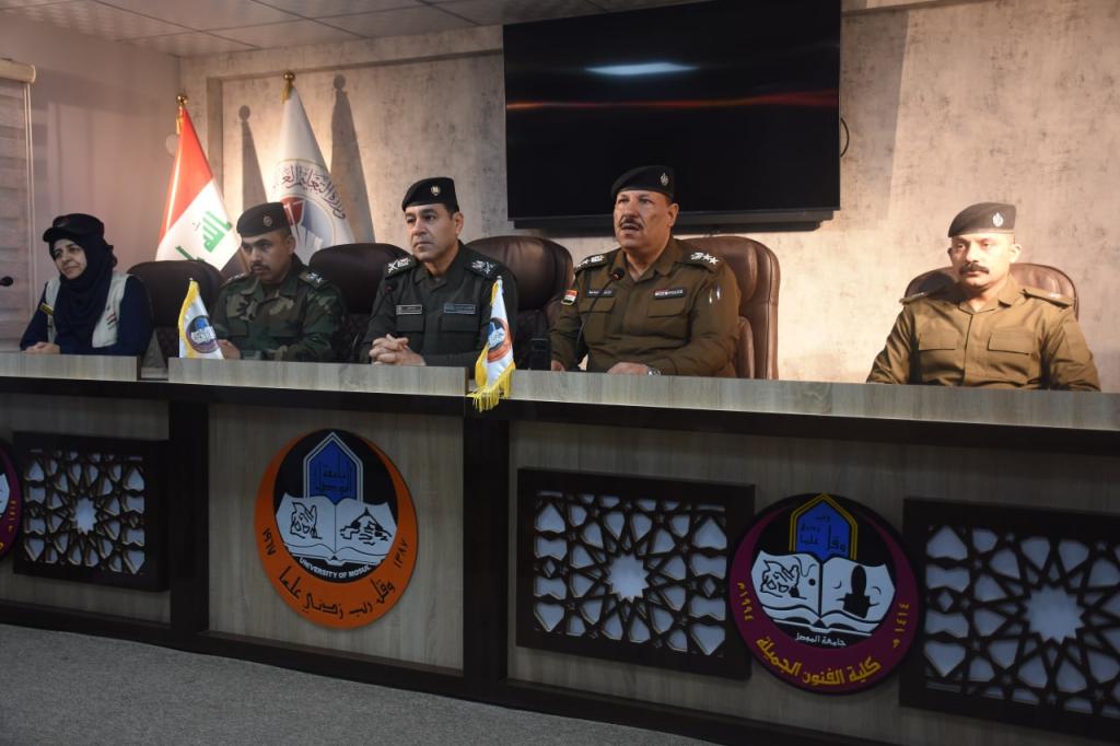 بإشراف الاستاذ الدكتور نشأت مبارك صليوا عميد كلية الفنون الجميلة وبحضور اللواء الدكتور احمد عبد الحسين السوداني مدير التوجيه في دائرة العلاقات والاعلام لوزارة الداخلية وكادر من الشرطة المجتمعية وبمناسبة اليوم العالمي لمناهضة العنف ضد المرأة .