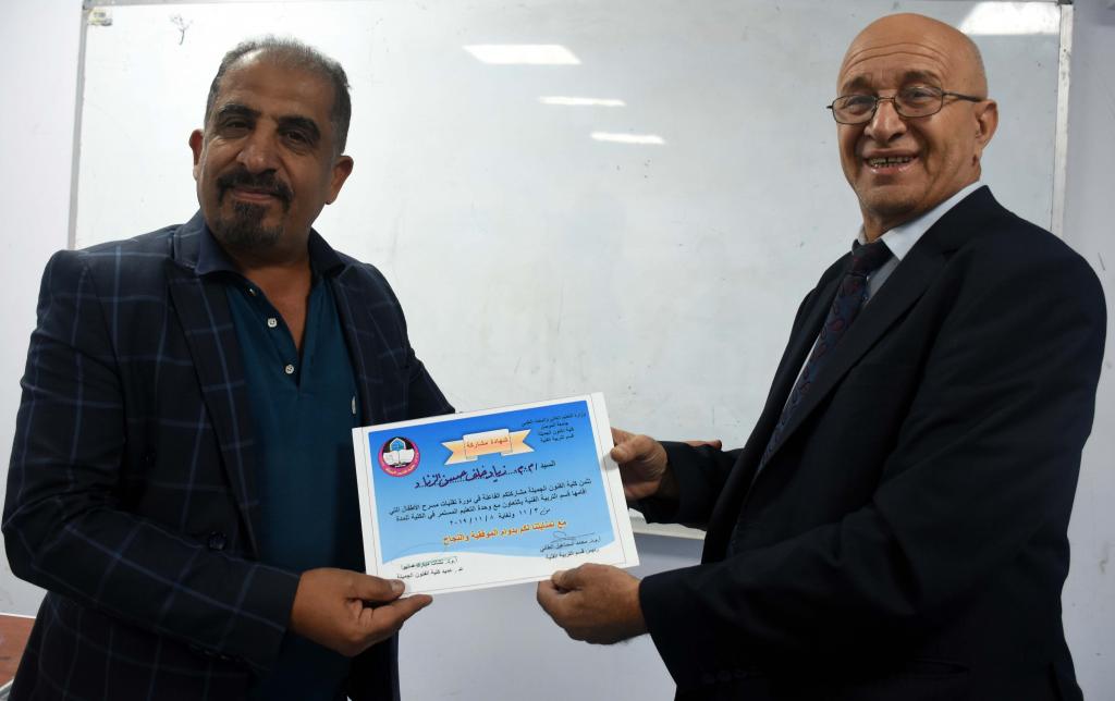 بحضور الدكتور نشأت مبارك صليوا وكيل عميد كلية الفنون الجميلة , اختتمت يوم الخميس الموافق 7 تشرين الثاني 2019 دورة تقنيات مسرح الاطفال التي اقامها قسم التربية الفنية بالتعاون مع وحدة التعليم المستمر في كلية الفنون الجميلة للمد 3 – 7 تشرين الثاني 2019 , تناولت عدة مواضيع تهتم بمسرح الاطفال للنص والاخراج والتمثيل والتقنيات والتلقي المسرحي , القاها أ.م.د. محمد اسماعيل الطائي رئيس قسم التربية الفنية وأ.م. يونس عناد و م.م. منتظر ذنون وم.م. انور محمد , واشترك فيها عدد من الخريجين والموظفين واساتذة الجامعة ومديرية التربية فضلا عن المهتمين بشؤون المسرح والطفولة ونالت استحسان الجميع , وفي نهاية الدورة تم توزيع الشهادات التقديرية على المشاركين