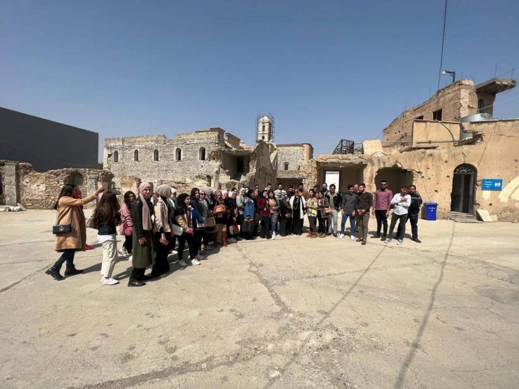 طلبة واساتذة كلية الفنون الجميلة في زيارة علمية لكنيسة الساعة في الموصل