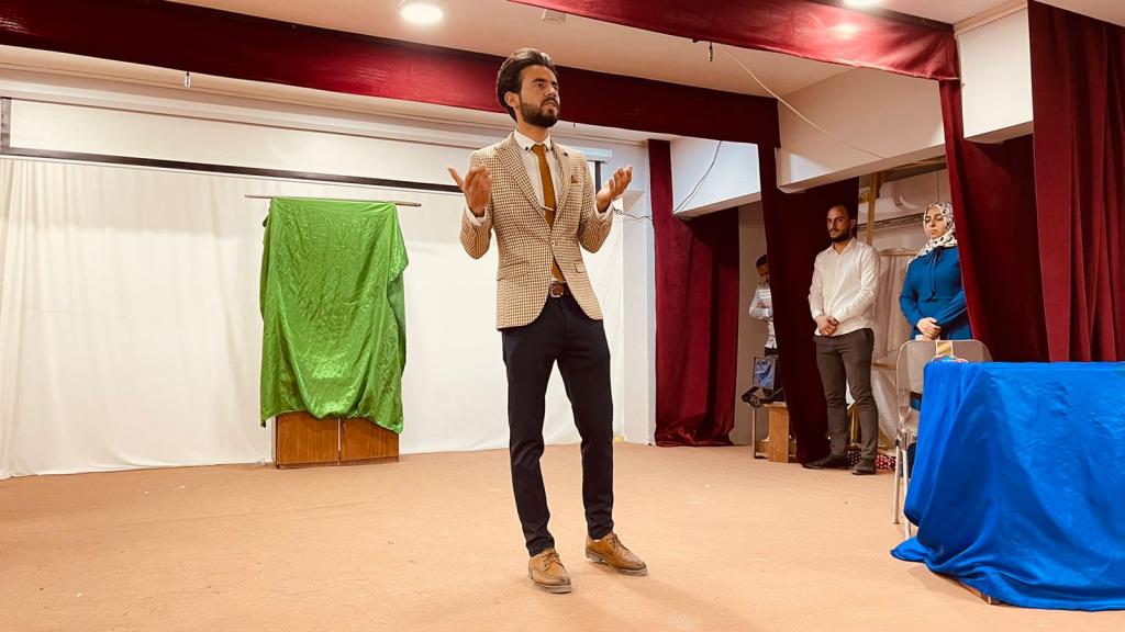 الدكتور عمر محمد جنداري تخصص اخراج مسرحي.