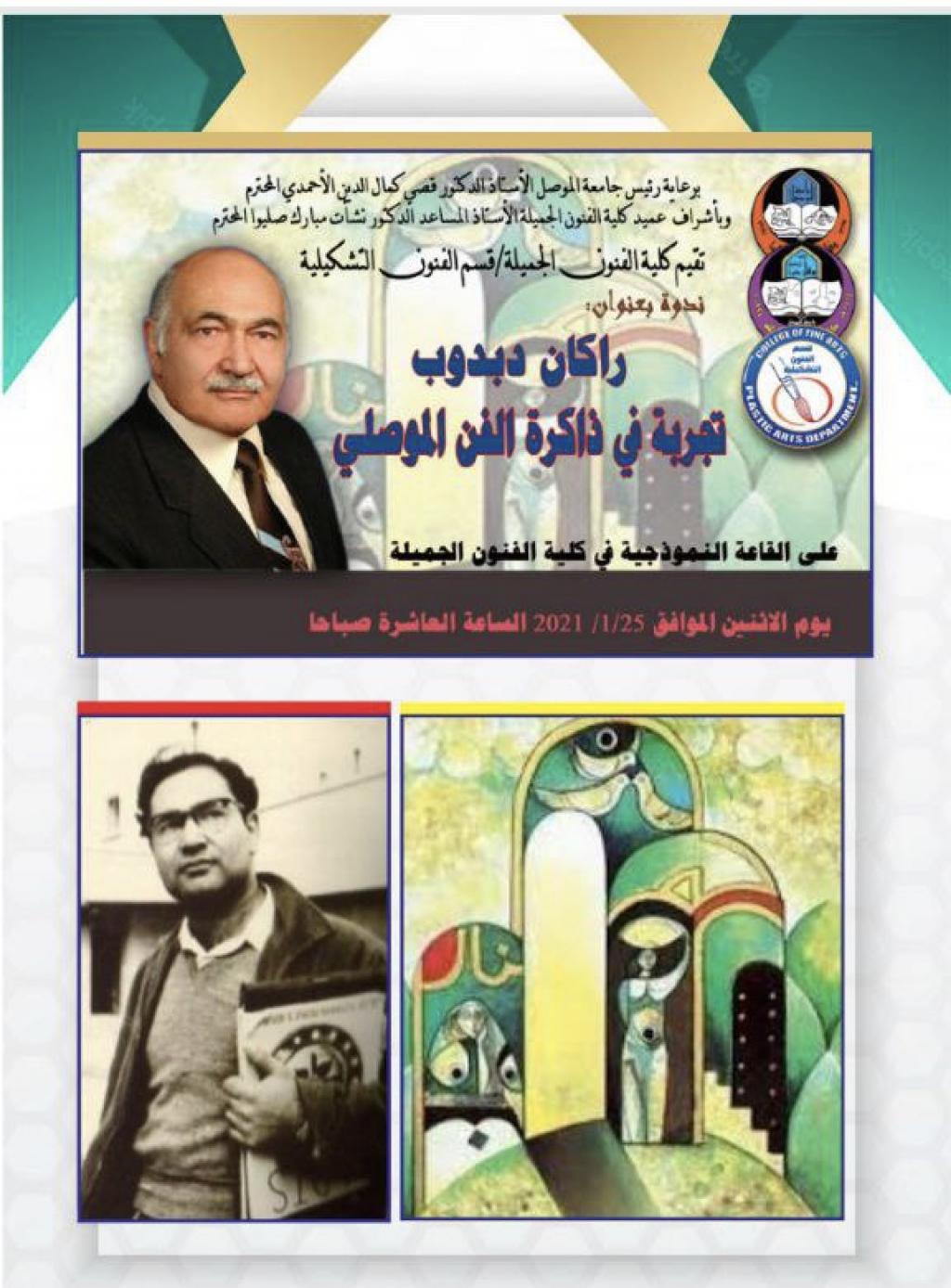 بناء على توجيهات السيد رئيس جامعة الموصل الأستاذ الدكتور قصي كمال الدين الأحمدي وبأشراف الأستاذ الدكتور نشأت مبارك صليوا عميد كلية الفنون الجميلة قامت كلية الفنون الجميلة متمثلة بعمادتها واساتيذها بأعداد اكثر من (20) دراسة أكاديمية لثلاثة من اعلام مدينة الموصل ورموزها الفنية وهم كل من: