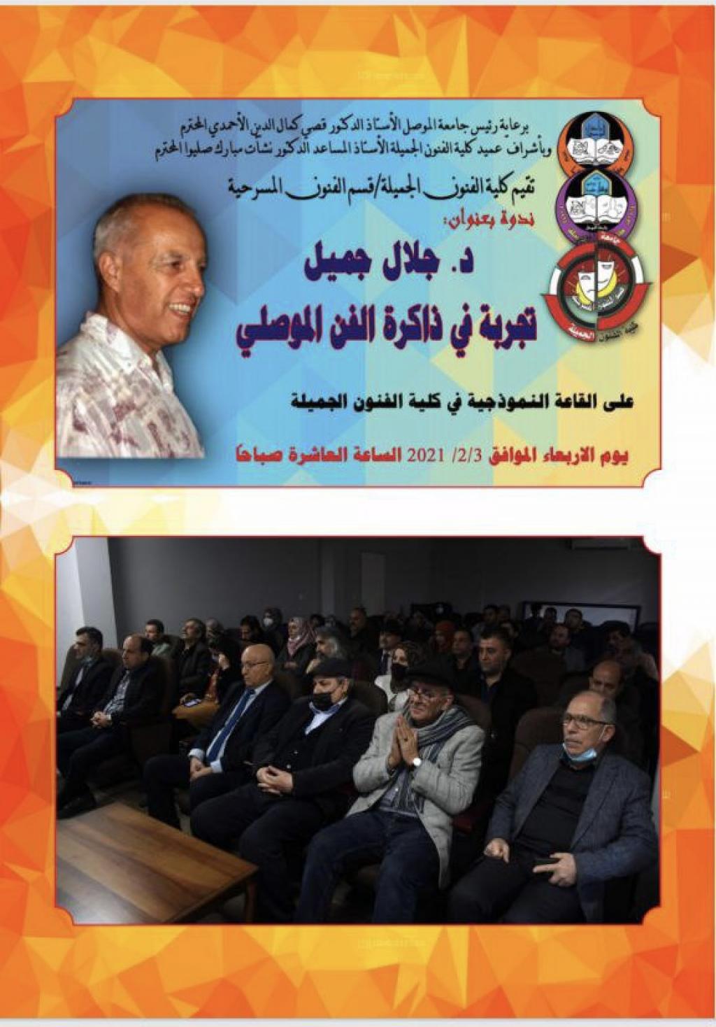 وذلك تثمينا لدورهم الريادي والفاعل في اغناء المشهد الفني الثقافي في مدينة الموصل بشكل خاص والعراق بشكل عام. وقد وجه السيد عميد الكلية بطبع ثلاث فولدرات تضمن هذه الدراسات الرصينة لتكون مرجعاً لطالبي العلم والمؤرخين والمهتمين بالمشهد الفني المسرحي والتشكيلي العراقي.شعبة إعلام كلية الفنون الجميلة