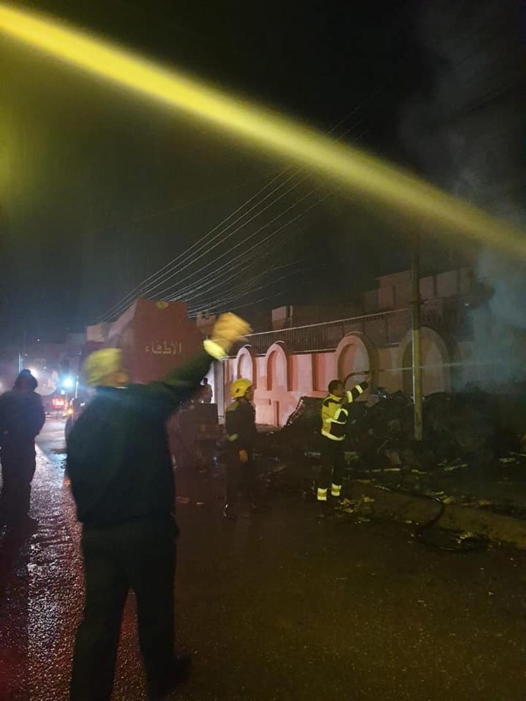 شعبة الدفاع المدني جامعة الموصل تشارك محافظة نينوى في إخماد حريق هائل
