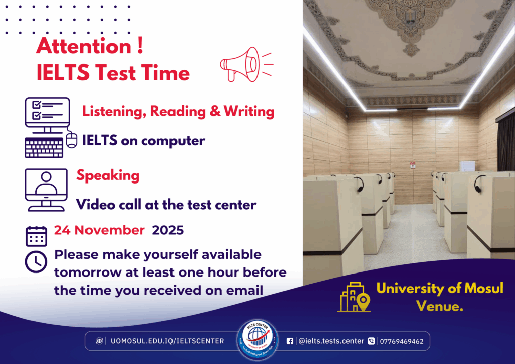 اكتمال اختبار الآيلتس (IELTS) في جامعة الموصل – 24 تشرين الثاني 2025