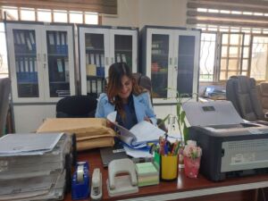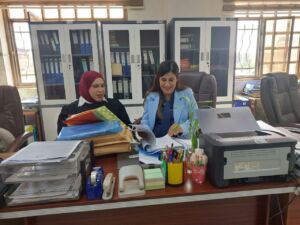 فريق من قسم ضمان الجودة والاداء الجامعي يختص بمراجعة الملفات التقويمية لأقسام الرئاسة ومراكزها