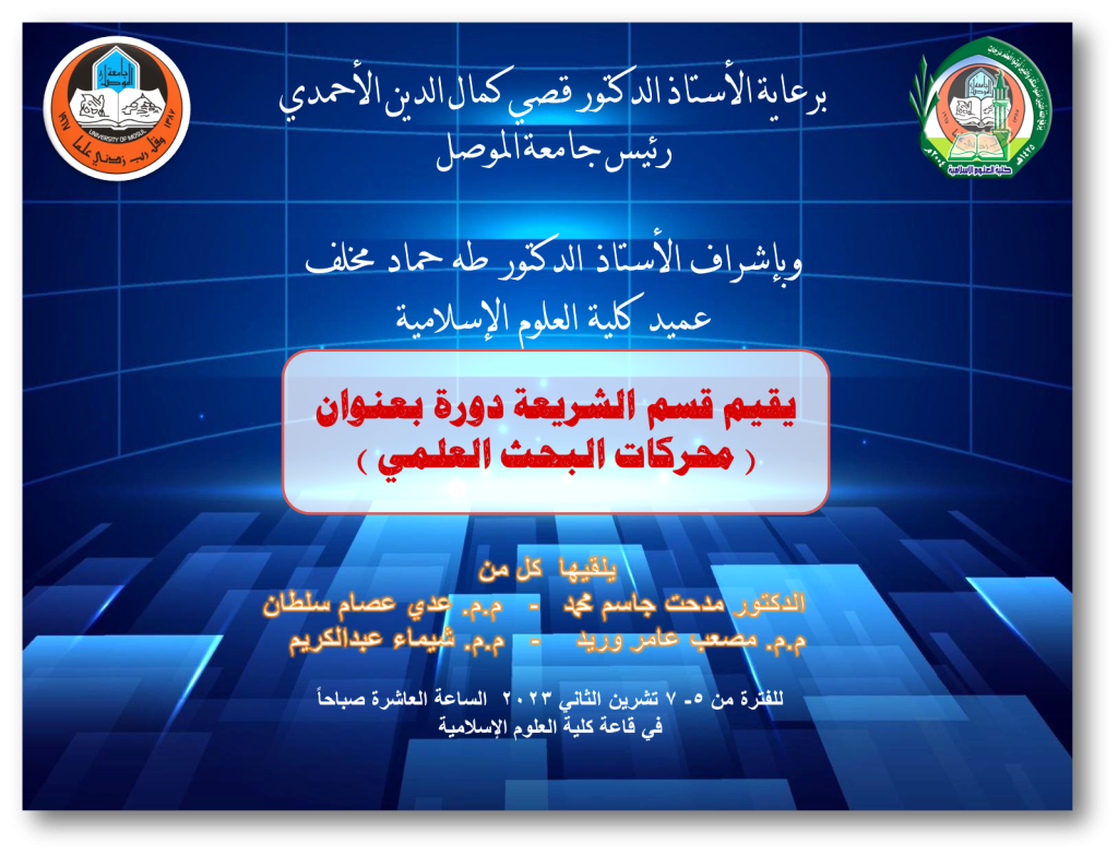 برعاية الأستاذ الدكتور قصي كمال الدين الاحمدي رئيس جامعة الموصل وبإشراف وحضور الأستاذ الدكتور طه حماد مخلف عميد كلية العلوم الإسلامية .