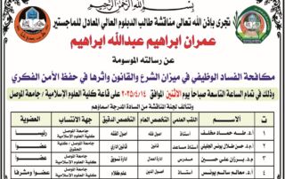 نوقشت هذا اليوم الخميس الموافق24 /7 /2025 في كلية العلوم الإسلامية بجامعة الموصل رسالة الماجستير الموسومة ( الفكر التربوي عند عبد المجيد الشرنوبي في كتابه [إقرأ المزيد]
