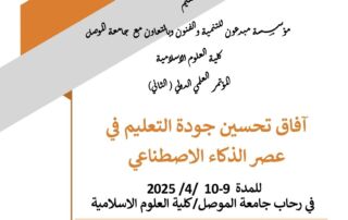 • بإشراف كلية العلوم الإسلامية وبالتعاون مع قسم الشؤون العلمية / جامعة الموصل يسرنا دعوتكم لحضور الورشة العلمية الموسومة:  ( المقومات الأساسية للنشر العلمي الرصين ) [إقرأ المزيد]