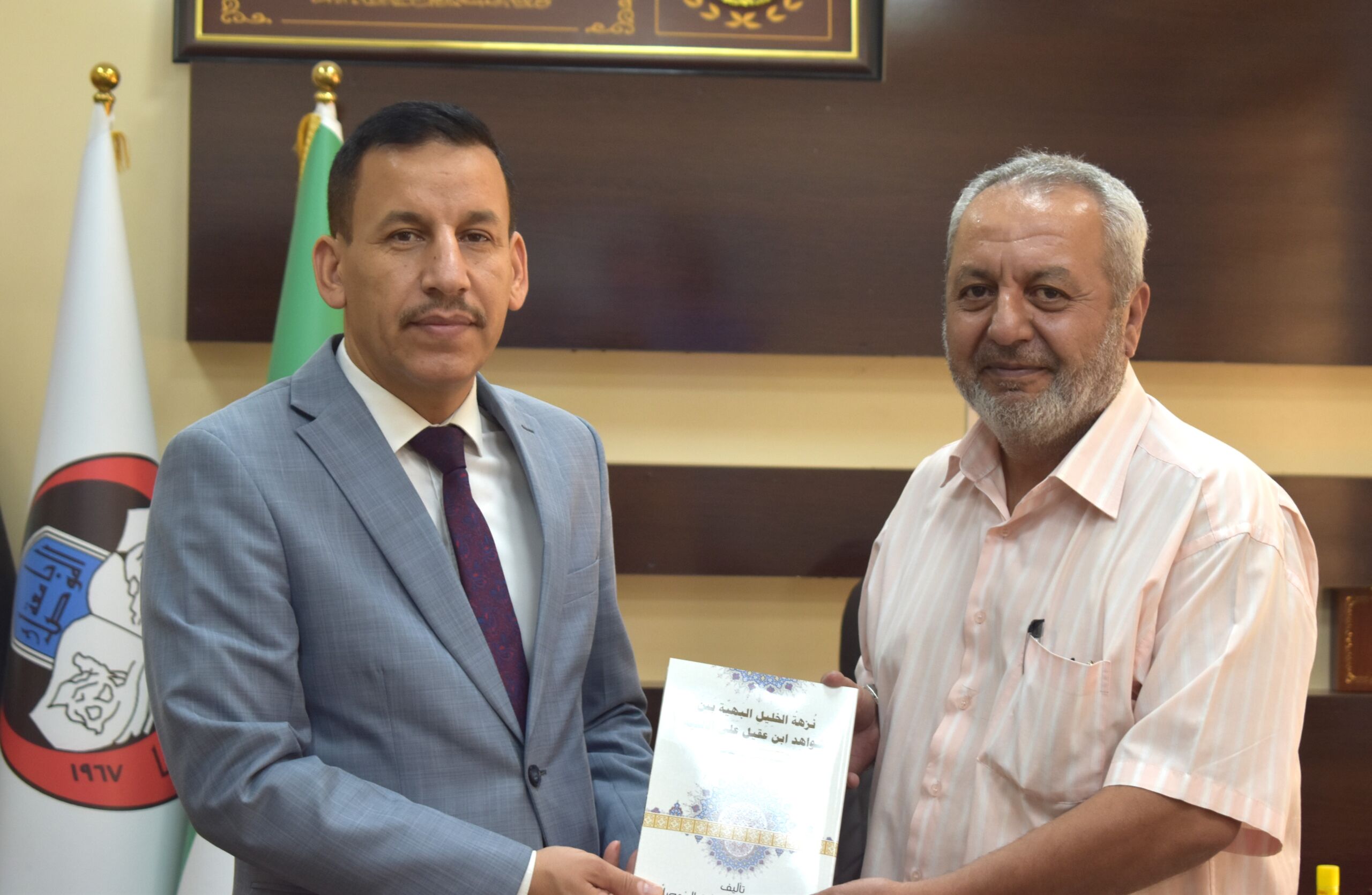 تسلّم السيد عميد الكلية الأستاذ الدكتور طه حماد مخلف نتاجين علميين للشيخ باسم إسماعيل إلياس والموسومين ( الدر الفريد بإحياء طريقة السيد الجنيد) و ( نزهة الخليل البهية بين شواهد ابن عقيل على الألفية).