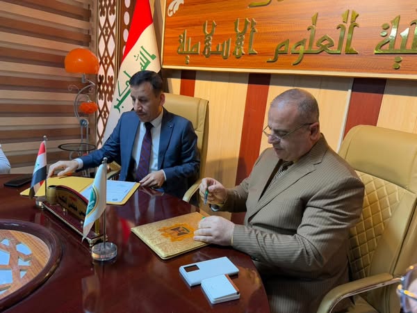 جاء ذلك خلال مراسم توقيع الكليتين على مذكرة تعاون مشترك يوم الاثنين الموافق 13/1/2025 وقد مثل كلية العلوم الإسلامية بجامعة ديالى عميدها الاستاذ المساعد الدكتور (عمر عبد الله نجم الدين الكيلاني ) ومجلس الكلية.