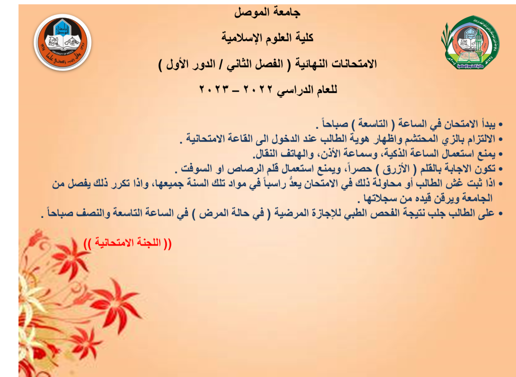 حيث رحب السيد العميد في بداية الاجتماع بالسادة التدريسيين على الملاكين الصباحي والمسائي حيث تضمن الاجتماع التأكيد على آلية وضع الأسئلة الامتحانية وطريقة الإجابة من قبل الطلبة وكذلك الالتزام بالتعليمات الصادرة من قبل الوزارة بالتزام الطلبة بالزي الرسمي كما أكد على تهيئة القاعات الامتحانية وأثنى السيد العميد على الجهود المبذولة من قبل اللجان الامتحانية للتعاون في سبيل إنجاح مسيرة الامتحانات النهائية واكد على ضرورة المواصلة من أجل اتمامها بنجاح.