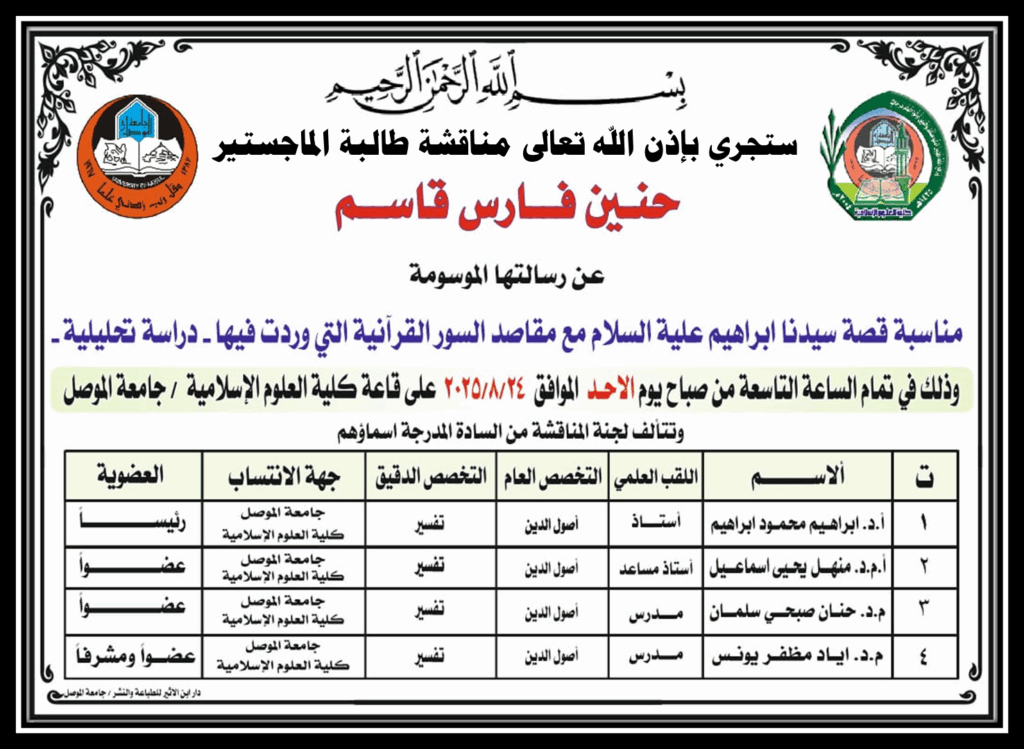 على الطلبة المقبولين في الدراسات العليا للعام الدراسي 2025-2026 اكمال استمارة تعاطي المخدرات عبر الرابط الآتي وتسليمها الى شعبة الدراسات العليا وذلك ضمن اكمال اجراءات القبول .