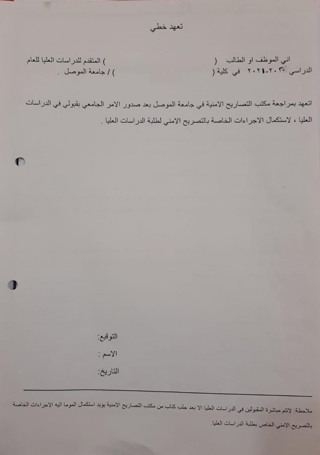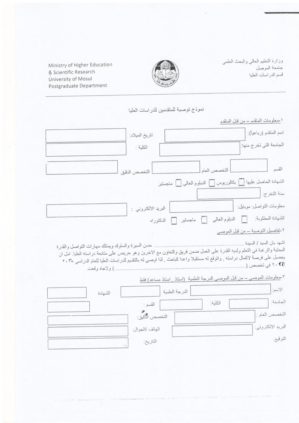 الى الطلبة المتقدمون الى الدراسات العليا في كلية العلوم الاسلامية نرفق لكم أدناه نماذج للتوصية وتعهد المساءلة والعدالة وتعهد التصريح الأمني التي يجب على المتقدم الى الدراسات العليا إرفاقها ضمن ملف التقديم .مع دعواتنا لكم بالتوفيق والنجاح .