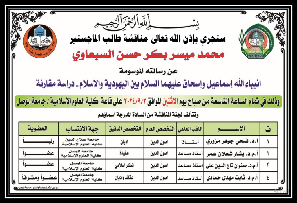 على طلاب الدراسات العليا في كليتنا الذين صدر أمر تعيينهم بعد تاريخ أمر القبول في الدراسات العليا لسنة ٢٠٢٤ مراجعة شعبة الدراسات العليا للإفصاح عن تعيينهم وتقديم امر التعيين والمباشرة .. و يتحمل الطالب التبعات القانونية اذا ثبت خلاف ذلك.