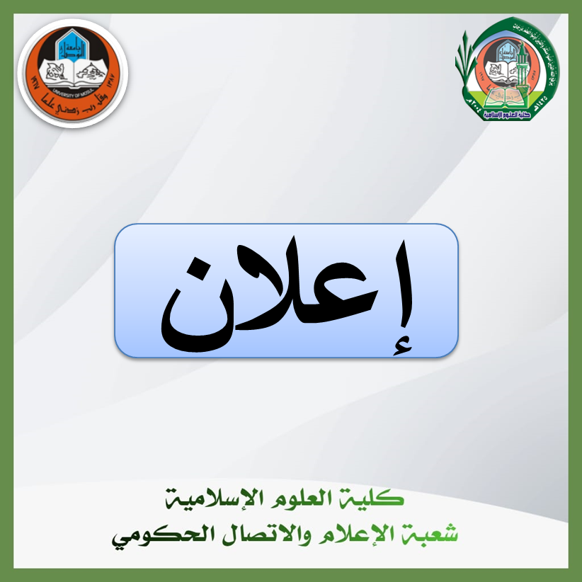 تعلن عمادة كلية العلوم الإسلامية عن قبول طلبة الدراسة المسائية لقسمي الشريعة والعقيدة والفكر الإسلامي للعام الدراسي 2025-2026 . على الطلبة الواردة أسماؤهم في القائمتين [إقرأ المزيد]